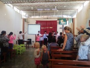Gemensam Gudstjänst i Las Lomas på temat ”Skriften allena”. Här ber vi för Diego