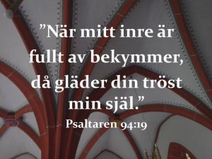 ”Ett myller av tankar går genom huvudet varje dag. Ingenting är så svårt att styra som dem. De oroliga tankarna gör mig rastlös och osäker och jagar bort själens frid – jag blir bekymrad. Men det finns ett botemedel: När mitt inre är fullt av bekymmer, då gläder din tröst min själ. (Ps. 94:19)”