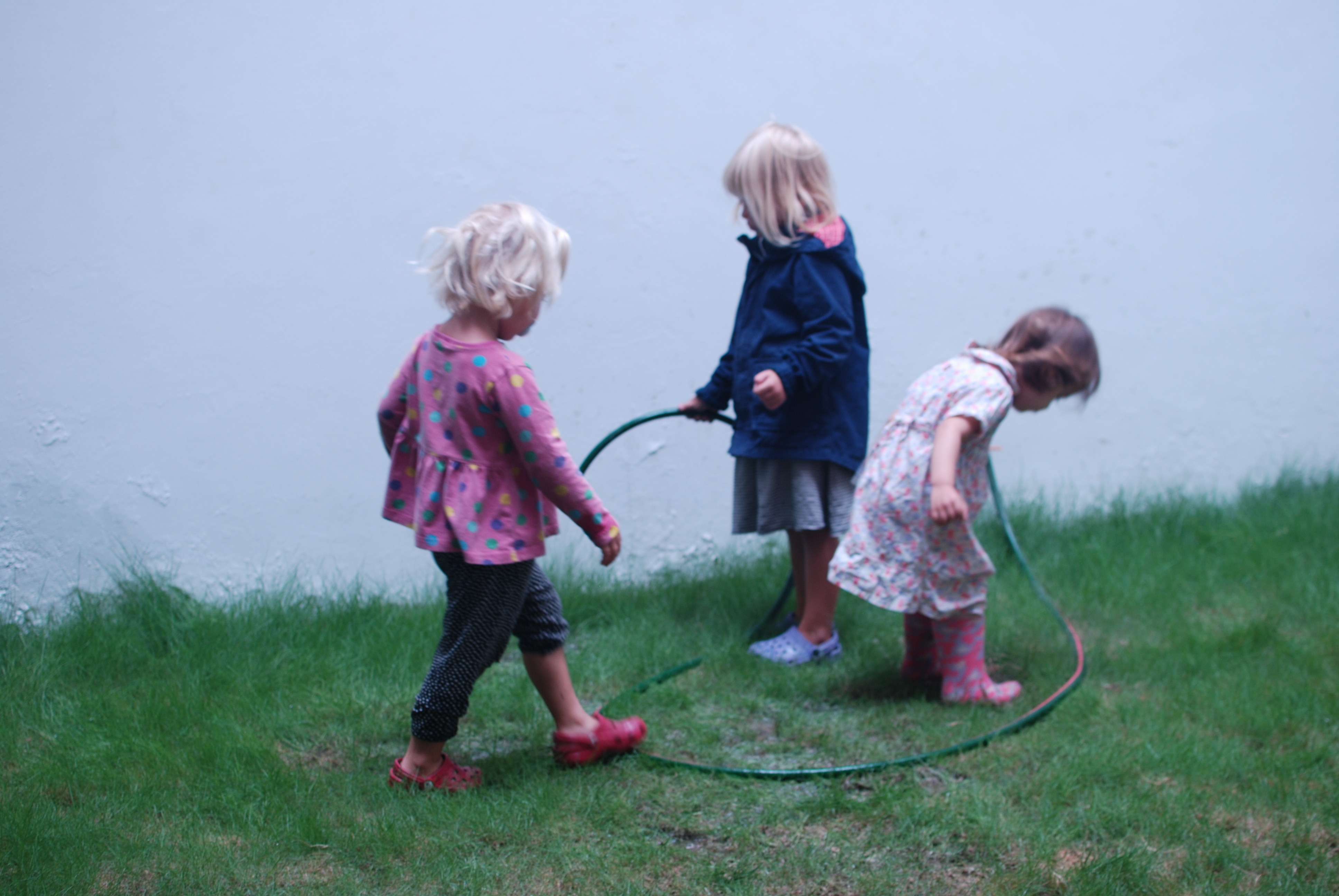 Föregående bild Nästa bild DSC_8015 Flickorna hjälper till och vattnar den lilla gräsmatta som hör till caféet.