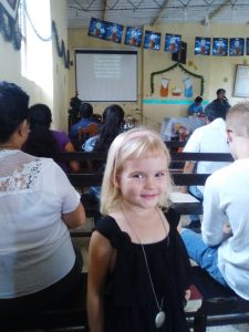 På eftermiddagen blev vi bjudna på lunch av Lesli, i hennes by som heter Collud. Hennes pojkvän Joel älskade maten, Pariuhela (Seafood)! Jag och Merci poserar glatt vid bergsfoten. På eftermiddagen kl 4.30 tog jag fotot av Ella, då på eftermiddagsgudstjänsten i San Antonio.