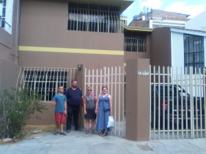 Onsdag den 11:e åkte jag och Annis buss i tre timmar för att komma till Piura. Vi hade möte i missionsgruppen, Jag, Annis och Steffen. Vi fick också se den nya kyrkan. Jag tog några bilder på utsidan. Det är inget fängelse! Här i Peru har man alltid galler för dörrar och fönster. På eftermiddagen åkte vi till ett köpcenter för att äta lunch, och för att kolla in H&M. (Kolla Annis längtan att gå in…). Själv satt jag kvar i restaurangen tillsammans med Steffen och volontär Daniel. Med både till H&M och till Piura följde även Helena, som var på besök från Norge. På missionsfältet känner vi oss ofta lika mycket som skandinavier som svenskar. Både danskar och norrmän känns som våra landsmän.