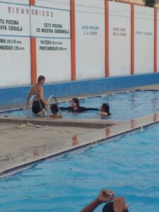 Efter det fina påskfirandet som vi fick i San Antonio sa Gustavs familj hejdå till alla. Efter bara en vecka kände de en stark anknytning till folket vilket gjorde det svårt att åka vidare söderut. Det var en bekräftelse på hur folket i kyrkan välkomnar och snabbt gör att man känna sig hemma. På ungdomsgruppen den kvällen var alla tre volontärer på ett och samma ställe. Det hade gått nästan en månad sedan det hade skett! Gustav åkte dock till Cusco dagen därpå och jag fick besök av min pojkvän på tisdagen. Innan han kom så höll jag i simlektioner till fyra äldre tjejer i församlingarna. Det var en fråga som jag fick tidigare på året men som vi inte fick till förrän nu. I Sverige är det en självklarhet att man lär sig att simma medans här kan man vara 30 och inte känna sig bekväm i vattnet. Det var en kul och lite otippat volontärsuppgift. 🙂 Vi hoppas på att få till det flera gånger.