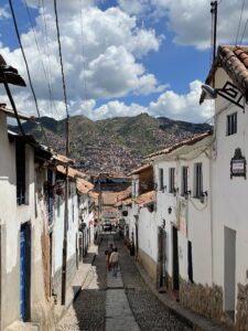 Vi har alla haft olika men ljuvliga upplevelser i Cusco den senaste månaden. Clara var där och vandrade på Inkaleden med sin familj. Gustav hade en veckans äventyr med sina föräldrar innan han gav sig iväg på sin egen vandringstur – han fick ju se Machu Picchu två gånger! Frode och jag cyklade, ”raftade” på floden och hajkade upp till Machu Picchu. Mäktigt och vackert! Så värt att ha en guide med oss för att få det mesta utav historien. En av det bästa intrycken från resan var dock när vi kom till Cusco och körde till gamla stan – så lugna gator, så friskt luft, så vackra berg, så grönt, så harmoniskt! Det var verkligen semesterkänsla att köpa en glas och strosa runt på stan. I Cusco finns det många turister också. Där känner man att man inte sticker ut lika mycket som i Chiclayo eftersom det finns folk från världens alla hörn som kommer att se en av världens under. Man blir en i mängden igen. Gustav och jag hann träffa vår vän, Esteban, som flyttade ner till Cusco på frukost en dag. Det var ett fint återseende på hans nya hemmaplan.