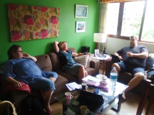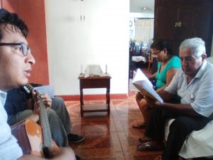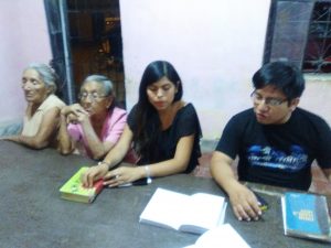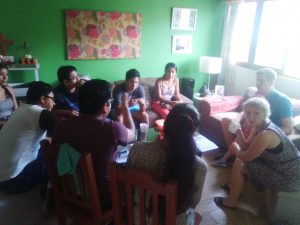 Vårt arbete innebär ganska många möten, personliga, sammanträden och gudstjänster. Här berättar Maria, en mångårigt trogen gudstjänstbesökare, under ett IELCH- möte, om situationen i Las Lomas efter regnet. Vi hade nyligen besök av Helene från Danmark, då vi också samlades möte i missionsgruppen, MEL Förra lördagen hade vi ett intressant planeringsmöte i vårat hus där vi samtalade om att försöka nå flera ungdomar i centrum. Annis ska börja med engelska undervisning med universitetstudenterna, själv hoppas jag få ha bibelundervisning med dem.
