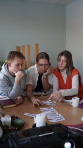 Vi har också fått lyssna till höstens volontärer som berättat om sin resa, lärt känna varandra på djupet, åkt skridskor på en vackert istäckt Hjälmsjön, pluggat grunder i swahili och videosamtalat med personalen på Bethesda över en bristfällig internetuppkoppling. Men framför allt har vi fått samlas i bön och bibelläsning för att fyllas och rustas inför vår resa. Och vad vi rustats! Det sociala arbete som i förväg kan uppfattas lite flummigt och oklart har fått klarna, och många av de orosmoment vi känt har fått stillas. Vi har fått veta att en måttsats till köket bör skrivas upp på packlistan, men att elvispen redan finns på plats. Vårens kladdkakor är alltså räddade, puh!