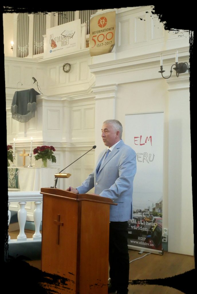 Salen i Roseniuskyrkan är fylld och Jens Lunnergård, medlem i Roseniuskyrkan och styrelseledamot i ELM, hälsar välkommen.