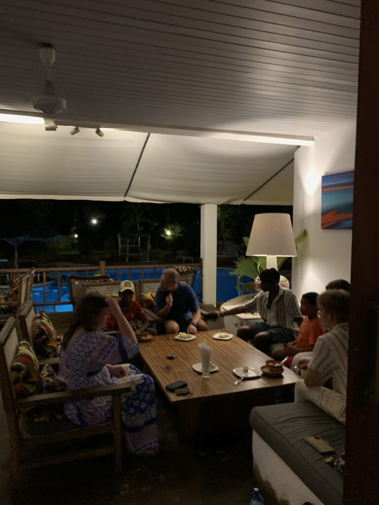 En annan kväll hade vi den stora förmånen att få träffa några vänner hemifrån Sverige. Vi mötte upp med David & Emma och deras söner för bad och middag. Fantastiskt att få prata svenska med några andra än varandra, dela upplevelser av Kenya, och känna sig lite mer som hemma. Speciellt fint var det nog för mig, eftersom familjen tillhör min kära hemförsamling Kviinge. Underbart!