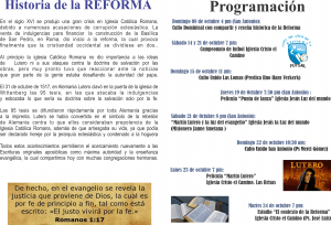 Varje kyrka har var sitt reformationstema tre söndagar i följd från och med söndag den 8 oktober, först ut är Las Lomas – Skriften allena, sedan San Antonio – Nåden allena och sist Las Brisas – Tron allena.
